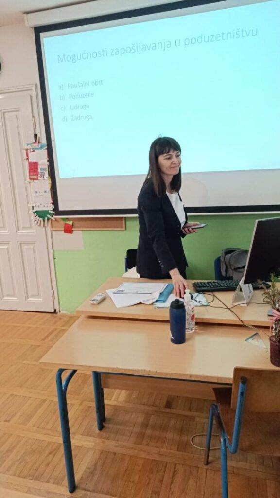 Učenici viših razreda naše škole prisustvovali su radionici „Mala poduzetnička akademija.“ Na njoj su imali priliku čuti o osnovama poduzetništva. Razgovarali su o vrstama poduzetnika te se svaki učenik odlučio za jednu vrstu poduzetnika. Prema tome su učenici bili grupirani u radne skupine. Svaka je skupina trebala osmisliti vlastiti proizvod te opisati njegove posebnosti, osmisliti naziv, ciljane potrošače, cijenu po kojoj bi se proizvod prodavao te marketing za osmišljeni proizvod. Svaka je skupina svoj proizvod prezentirala ostalim učenicima. Učenici su se tako okušali u „poduzetničkim vodama“, a sama radionica im se jako svidjela.